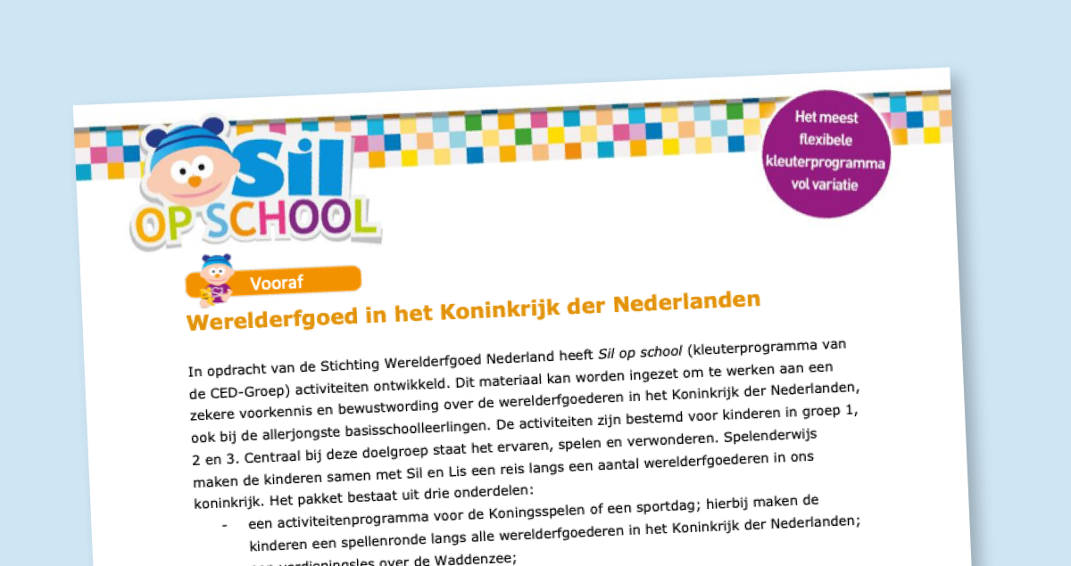 De Koningsspelen zijn in 2025 op donderdag 17 april. Organiseer je voor kleuters op het schoolplein of in het speellokaal ook een gezellige spelletjesdag? Speciaal in het kader van Koningsspelen heeft Stichting Werelderfgoed Nederland een mooi activiteitenprogramma voor op school. De kinderen maken een spellenronde en komen zo op een actieve manier in contact met al het UNESCO Werelderfgoed in het Koninkrijk der Nederlanden! Je kan deze middelen natuurlijk ook gebruiken voor een ander activiteitenprogramma.