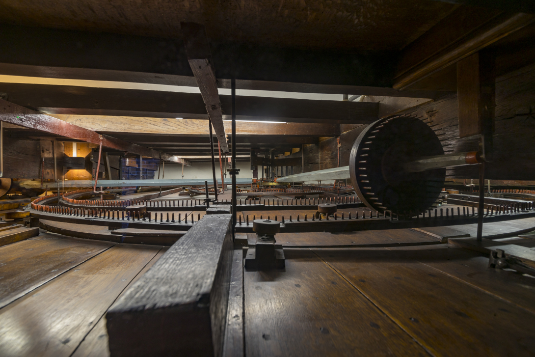 Wolfabrikant Eise Eisinga bouwde het mechanisme op een ingenieuze manier in het plafond en de bedkastwand van zijn woonkamer. Hierdoor was hij in staat een groot model te bouwen, waarbij de hemellichamen goed zichtbaar boven de bezoekers hangen. De vindingrijkheid van Eisinga en de gedetailleerde instructies voor het onderhoud die hij naliet, dragen eraan bij dat het mechanisme nog altijd werkt.